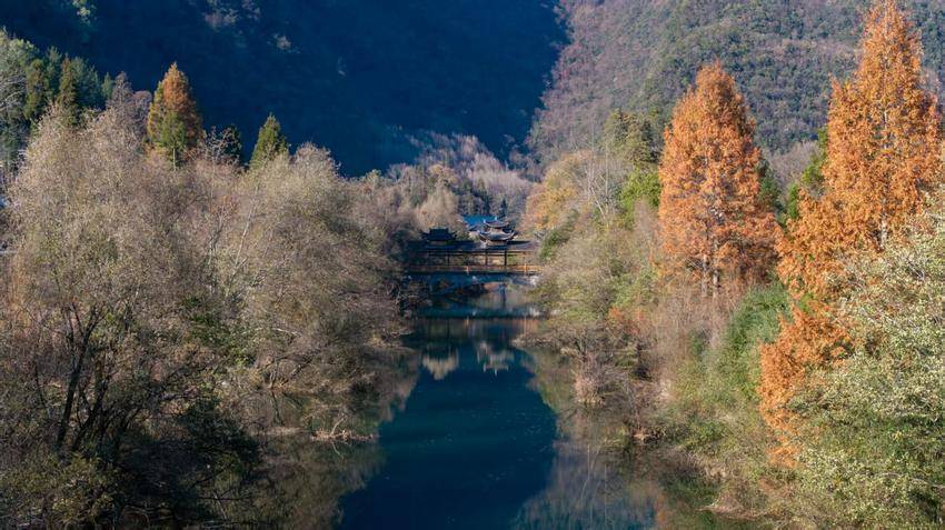 暖阳西斜,给风雨桥镀上一层金边,董家河的水愈发碧绿。这冬日的董家村,没有肃杀寒意,只有暖阳、碧水、古桥相映的静谧景致,这是自然馈赠的赞歌,也是藏在山乡深处的温柔岁月。